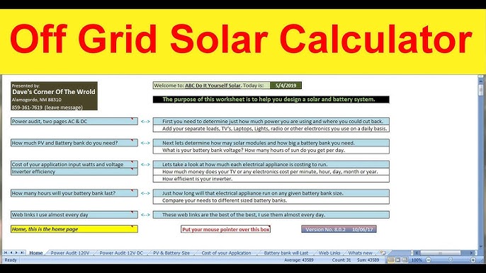 76 Off Grid Solar Calculator Software Excel Spreadsheet How To Calculate Solar Panel Needs Youtube